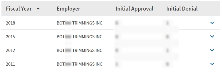 - 2011, 2012, 2015, 2018년 취업비자 스폰이력 확인.