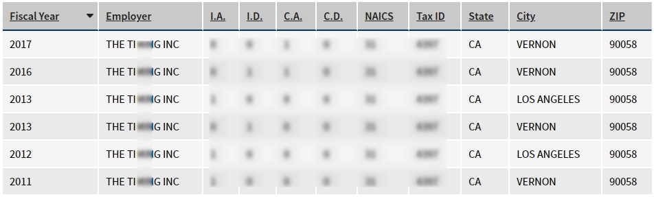 - 2011, 2012, 2013, 2016, 2017년 취업비자 스폰이력 확인.