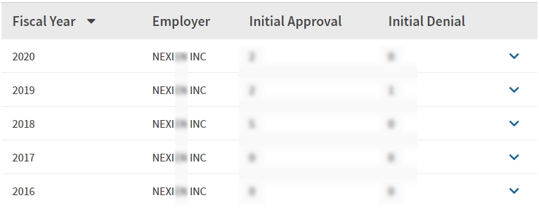 - 2016, 2017, 2018, 2019, 2020년 취업비자 스폰이력 확인.