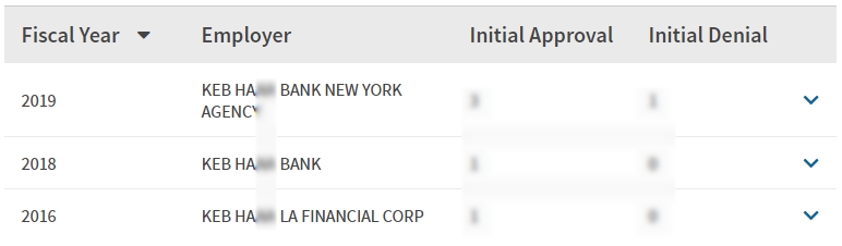 - 2016, 2018, 2019년 취업비자 스폰이력 확인.