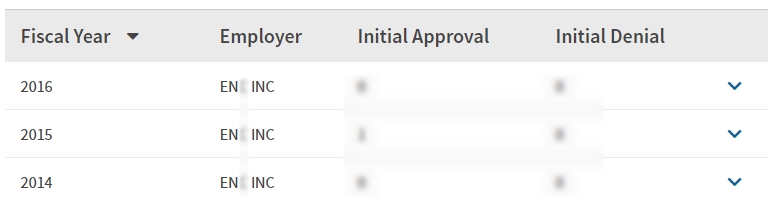 - 2014, 2015, 2016년 취업비자 스폰이력 확인.