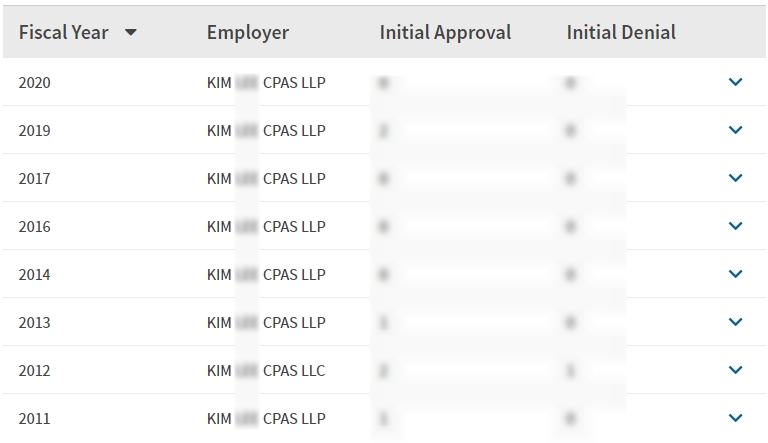 - 2011, 2012, 2013, 2014, 2015, 2016, 2017, 2019, 2020년 취업비자 스폰이력 확인.