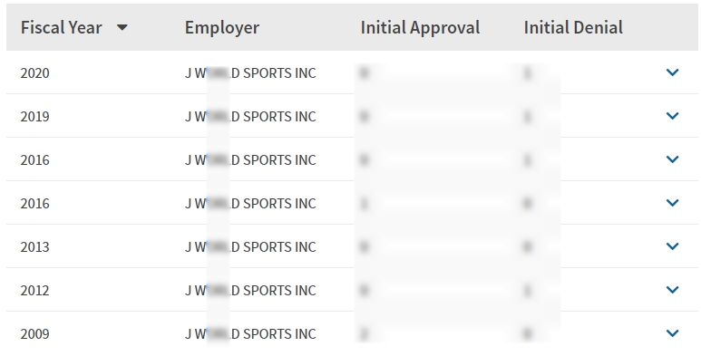 - 2009, 2012, 2013, 2016, 2019, 2020년 취업비자 스폰이력 확인.