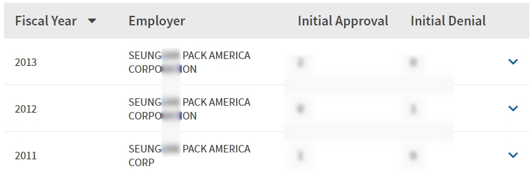 - 2011, 2012, 2013년 취업비자 스폰이력 확인.