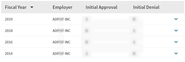- 2014, 2016, 2018, 2019년 취업비자 스폰이력 확인.