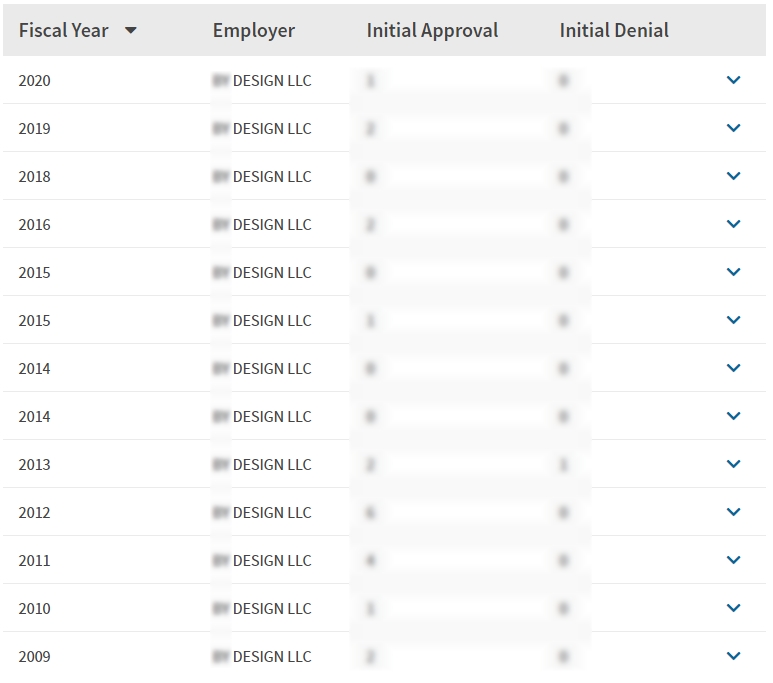 - 2009년을 시작으로 매년 취업비자 스폰이력 확인.