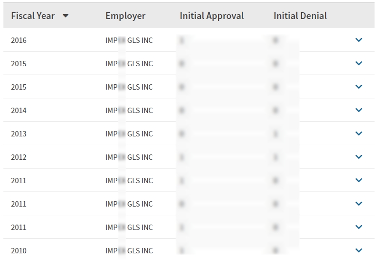 - 2010, 2011, 2012, 2013, 2014, 2015, 2016년 취업비자 스폰이력 확인.