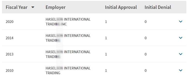 - 2010, 2013, 2014, 2020년 취업비자 스폰이력 확인.