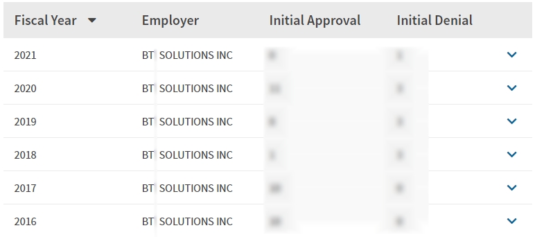 - 2016, 2017, 2018, 2019, 2020, 2021년 취업비자 스폰이력 확인.