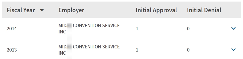 - 2013, 2014년 취업비자 스폰이력 확인.