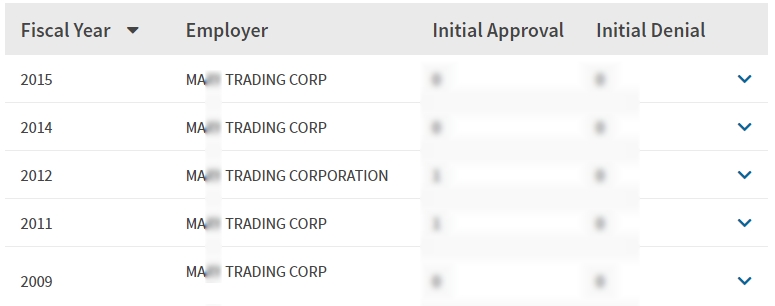 - 2009, 2011, 2012, 2014, 2015년 취업비자 스폰이력 확인.