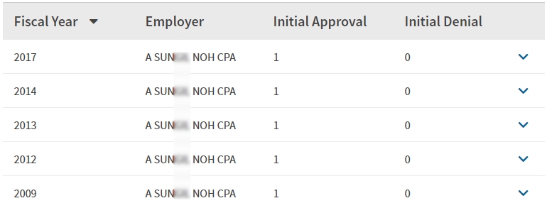 - 2009, 2012, 2013, 2014, 2017년 취업비자 스폰이력 확인.