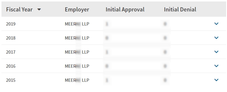 - 2015, 2016, 2017, 2018, 2019년 취업비자 스폰이력 확인.