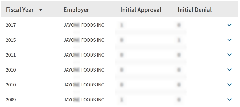- 2009, 2010, 2011, 2015, 2017년 취업비자 스폰이력 확인.