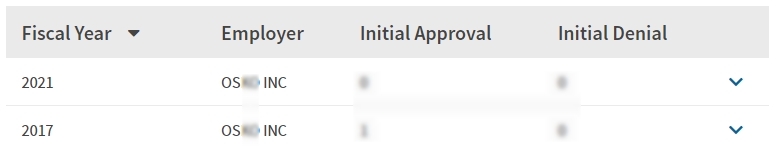 - 2017, 2021년 취업비자 스폰이력 확인.