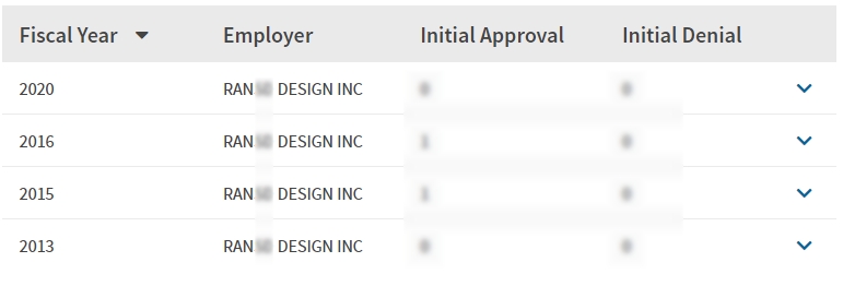 - 2013, 2015, 2016, 2020년 취업비자 스폰이력 확인.
