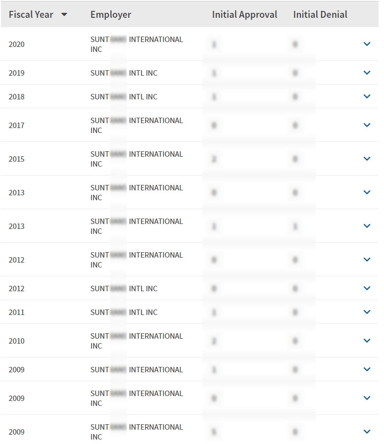 - 2009, 2010, 2011, 2012, 2013, 2015, 2017, 2018, 2019, 2020년 취업비자 스폰이력 확인.