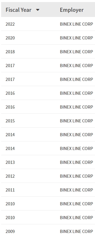 - 2009, 2010, 2011, 2012, 2013, 2014, 2015, 2016, 2017, 2018, 2020, 2022년 취업비자 스폰이력 확인.