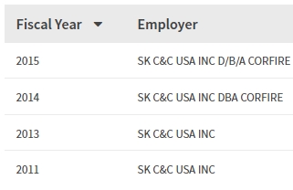 - 2011, 2013, 204, 2015년 취업비자 스폰이력 확인.