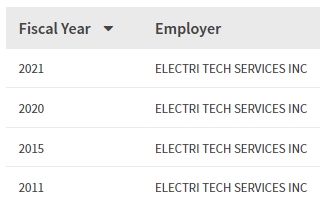 - 2011, 2015, 2020, 2021년 취업비자 스폰이력 확인.