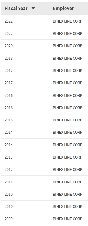 - 2009, 2010, 2011, 2012, 2013, 2014, 2015, 2016, 2017, 2018, 2020, 2022년 취업비자 스폰이력 확인.
