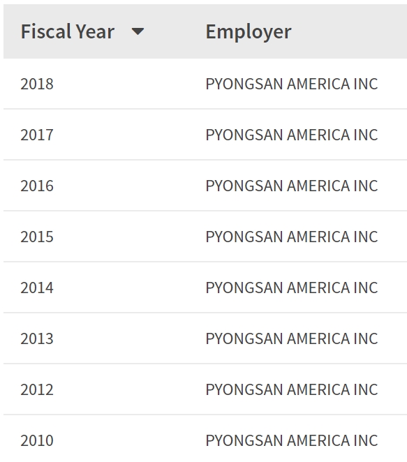 - 2010, 2012, 2013, 2014, 2015, 2016, 2017, 2018년 취업비자 스폰이력 확인.