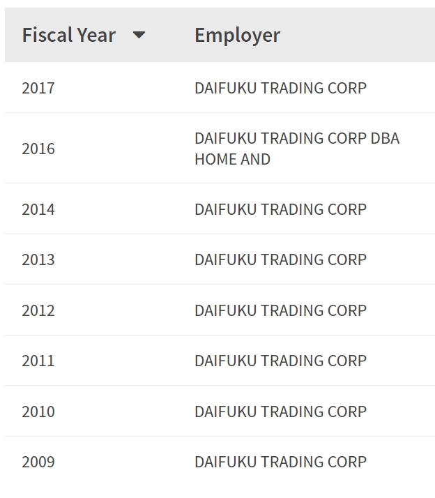 - 2009, 2010, 2011, 2012, 2013, 2014, 2016, 2017년 취업비자 스폰이력 확인.