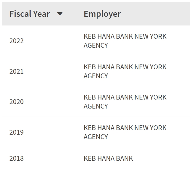 - 2018, 2019, 2020, 2021, 2022년 취업비자 스폰이력 확인.