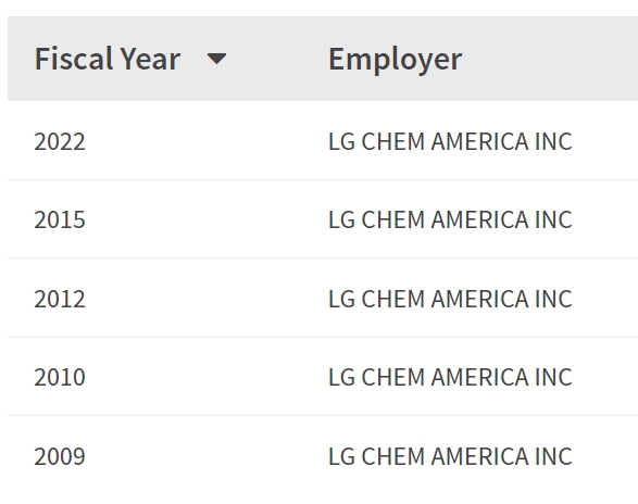 - 2009, 2010, 2012, 2015, 2022년 취업비자 스폰이력 확인.