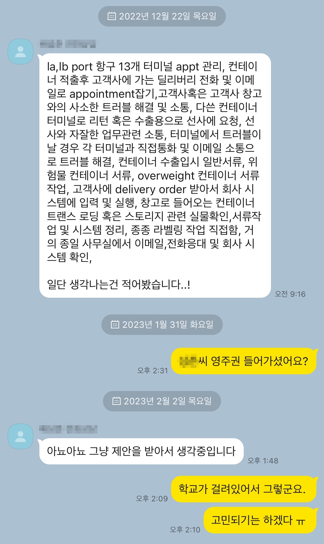 - 근무평가에 따라 취업비자 or 영주권 스폰