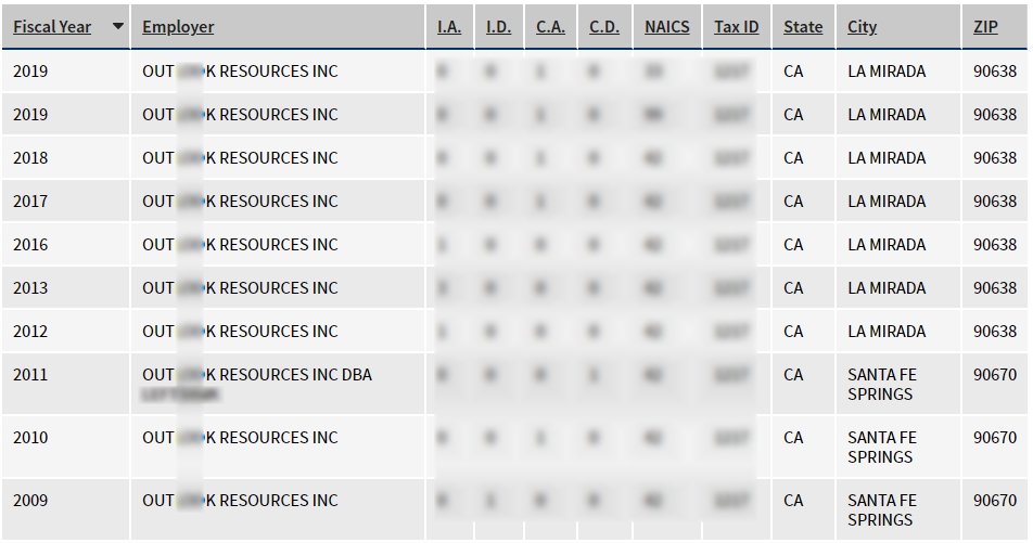 - 2009, 2010, 2011, 2012, 2013, 2016, 2017, 2018, 2019년 취업비자 스폰이력 확인.