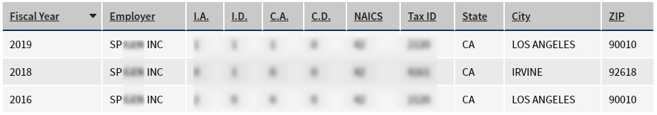- 2016, 2018, 2019년 취업비자 스폰이력 확인.