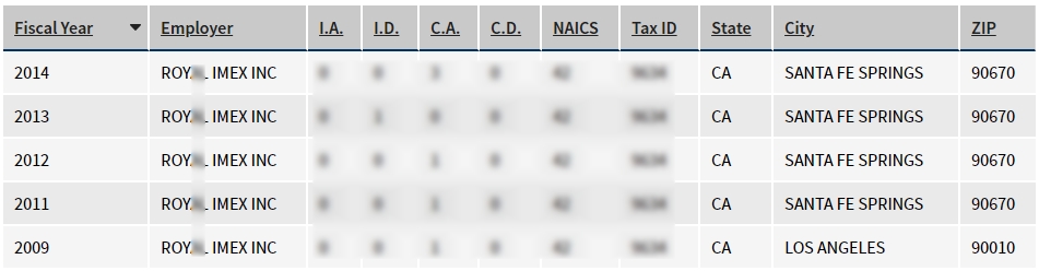 - 2009, 2011, 2012, 2013, 2014년 취업비자 스폰이력 확인.