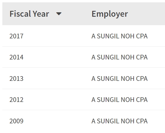- 2009, 2012, 2013, 2014, 2017년 취업비자 스폰이력 확인.