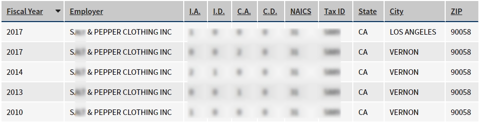 - 2010, 2013, 2014, 2017년 취업비자 스폰이력 확인.