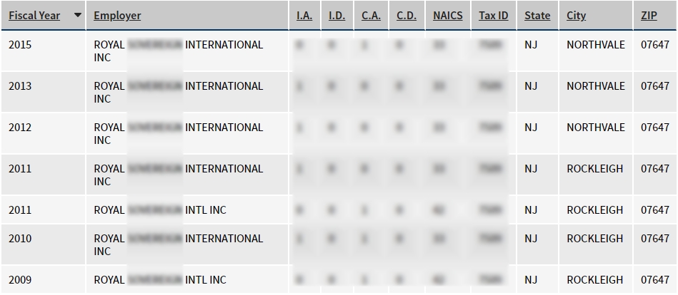 - 2009, 2010, 2011, 2012, 2013, 2015년 취업비자 스폰이력 확인.