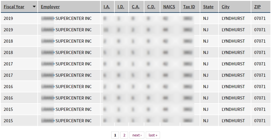 - 미국 전역에서 많은 인원에 대하여 취업비자 스폰이력 확인.