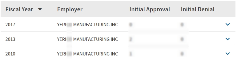 - 2010, 2013, 2017년 취업비자 스폰이력 확인.