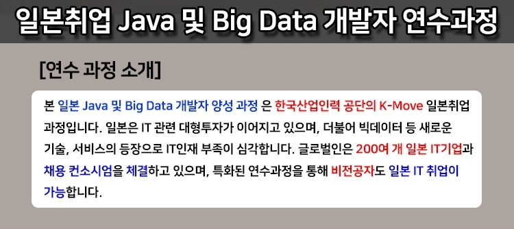 일본 IT(JAVA), Big Data 개발자 취업 국비지원 과정 참가자 모집