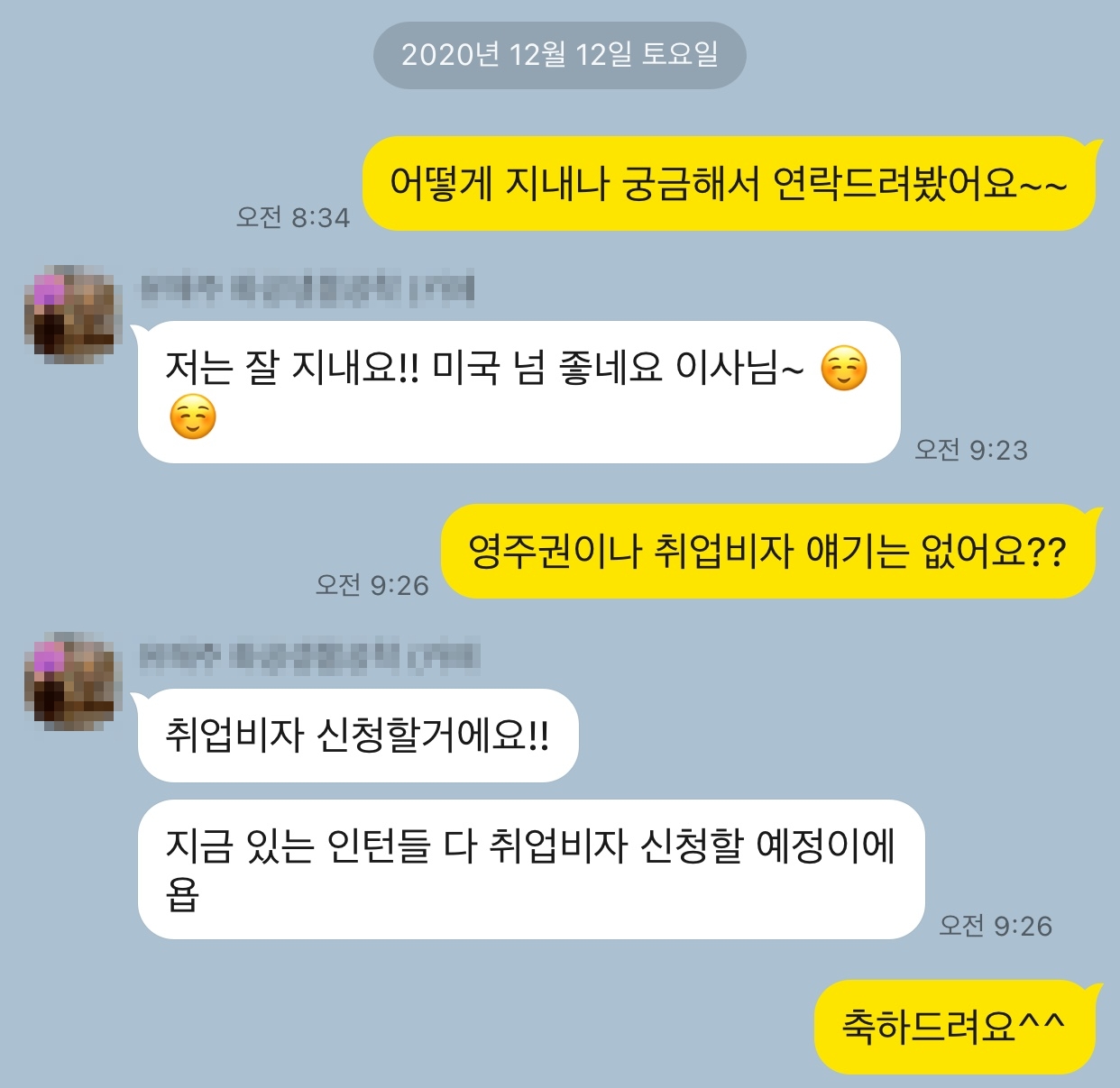 이번에도 역시 근무하고 있는 모든 인턴들에게 취업비자를 스폰한다는 내용이네요.