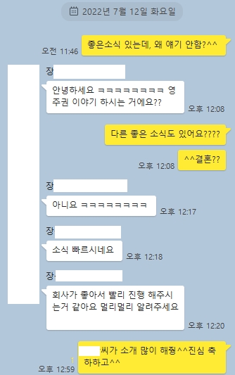 이 친구는 타 에이전트를 통해서 진행한 친구를 통해 저희를 소개받아