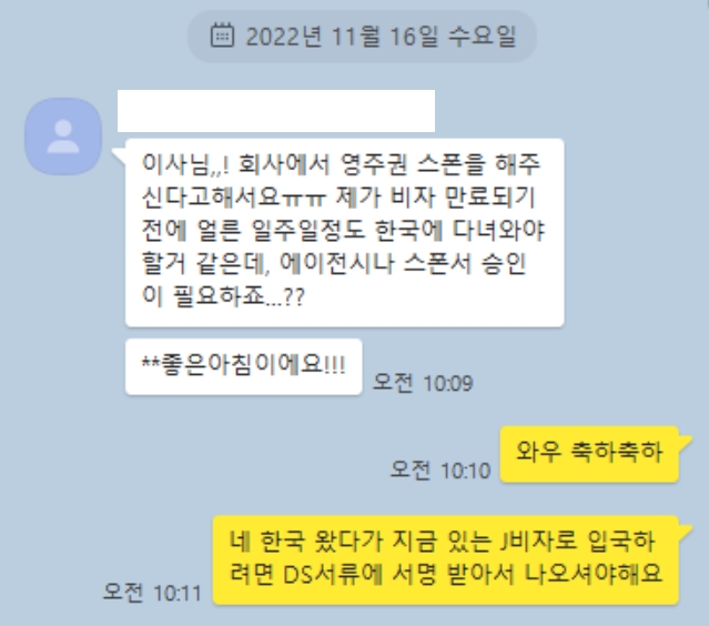 22년 1월 초 근무 시작했는데 비자 만료를 두달 남겨놓고 영주권 진행이 결정되었다는 연락을 받았습니다.