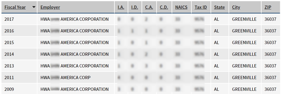 - 2009, 2011, 2013, 2014, 2015, 2016, 2017년 취업비자 스폰이력 확인.