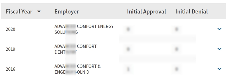 - 2016, 2019, 2020년 취업비자 스폰이력 확인.