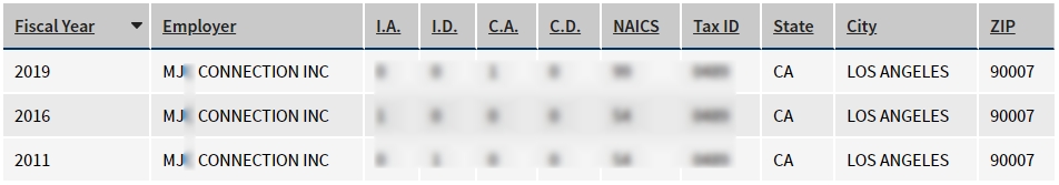- 2011, 2016, 2019년 취업비자 스폰이력 확인.