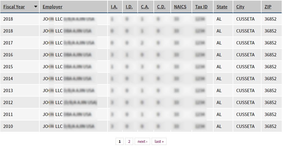 - 2009년부터 매년 취업비자 스폰이력 확인.
