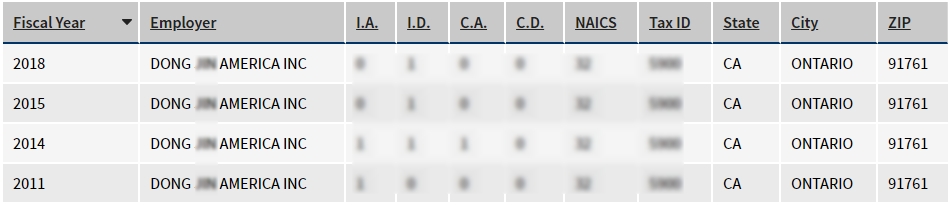 - 2011, 2014, 2015, 2018년 취업비자 스폰이력 확인.