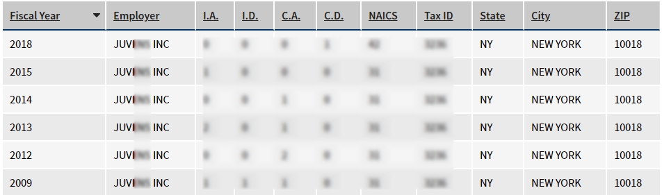 - 2009, 2012, 2013, 2014, 2015, 2018년 취업비자 스폰이력 확인.