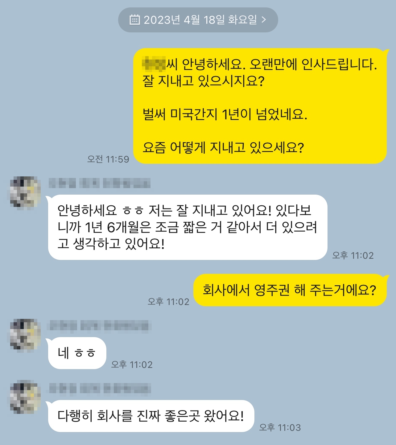 - 근무평가에 따라 취업비자 or 영주권 스폰