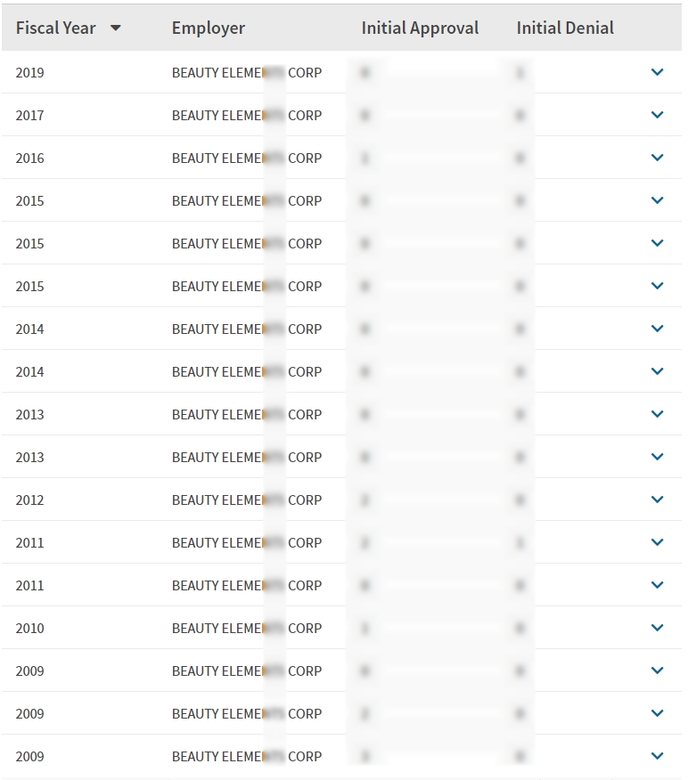 - 2009, 2010, 2011, 2012, 2013, 2014, 2015, 2016, 2017, 2019년 취업비자 스폰이력 확인.